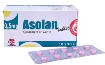 Asolan 0.5mg (Alprazolam)H/100 viên (Điều trị tình trạng hoảng sợ, lo âu, trầm cảm)