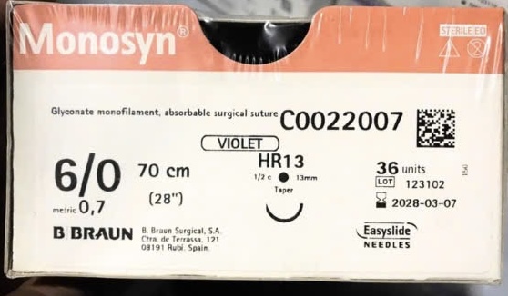 - Chỉ phẫu thuật tự tiêu MONOSYN VIOLET6/0 H/12 tép